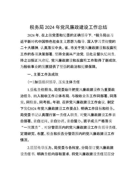 税务局 2024 年党风廉政建设工作总结 2024-10-23 Word模板 63 购买前,请一定要先点击这里看看,欢迎持续关注,精彩模板每天推送 预览结束,本文件为word文档,一共6页,共2602字,请购买后,下载后查看 购买前,请一定要先点击这里看看,欢迎持续关注,精彩模板每天推送 资源下载下载价格29 RMBVIP免费升级VIP点击检测网盘有效后购买有任何充值和下载问题请加微信:xuexixuexi66 0 总结汇报