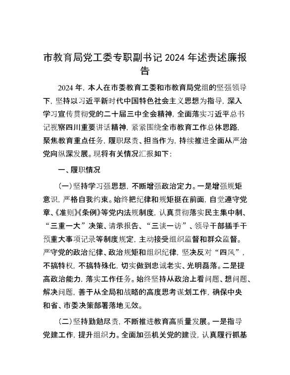 市教育局党工委专职副书记2024年述责述廉报告 2024-10-23 Word模板 58 购买前,请一定要先点击这里看看,欢迎持续关注,精彩模板每天推送 预览结束,本文件为word文档,一共5页,共2337字,请购买后,下载后查看 购买前,请一定要先点击这里看看,欢迎持续关注,精彩模板每天推送 资源下载下载价格29 RMBVIP免费升级VIP点击检测网盘有效后购买有任何充值和下载问题请加微信:xuexixuexi66 0 总结汇报
