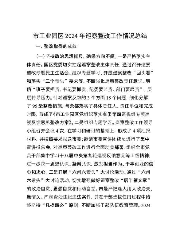 市工业园区2024年巡察整改工作情况总结 2024-10-23 Word模板 63 购买前,请一定要先点击这里看看,欢迎持续关注,精彩模板每天推送 预览结束,本文件为word文档,一共6页,共2859字,请购买后,下载后查看 购买前,请一定要先点击这里看看,欢迎持续关注,精彩模板每天推送 资源下载下载价格29 RMBVIP免费升级VIP点击检测网盘有效后购买有任何充值和下载问题请加微信:xuexixuexi66 0 总结汇报