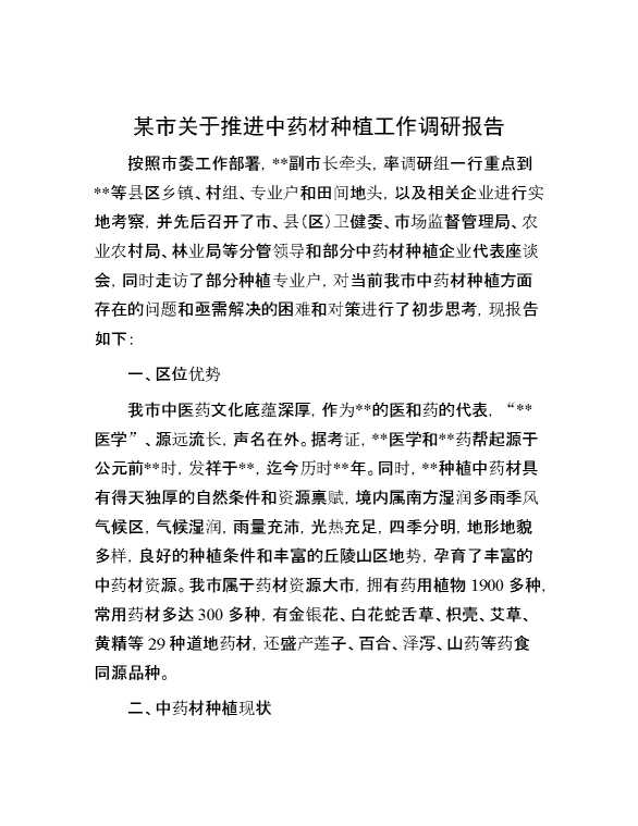 某市关于推进中药材种植工作调研报告 2024-10-23 Word模板 61 购买前,请一定要先点击这里看看,欢迎持续关注,精彩模板每天推送 预览结束,本文件为word文档,一共6页,共2477字,请购买后,下载后查看 购买前,请一定要先点击这里看看,欢迎持续关注,精彩模板每天推送 资源下载下载价格29 RMBVIP免费升级VIP点击检测网盘有效后购买有任何充值和下载问题请加微信:xuexixuexi66 0 总结汇报
