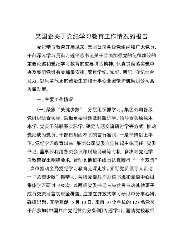 某国企关于党纪学习教育工作情况的报告 2024-10-23 Word模板 61 购买前,请一定要先点击这里看看,欢迎持续关注,精彩模板每天推送 预览结束,本文件为word文档,一共6页,共2806字,请购买后,下载后查看 购买前,请一定要先点击这里看看,欢迎持续关注,精彩模板每天推送 资源下载下载价格29 RMBVIP免费升级VIP点击检测网盘有效后购买有任何充值和下载问题请加微信:xuexixuexi66 0 总结汇报