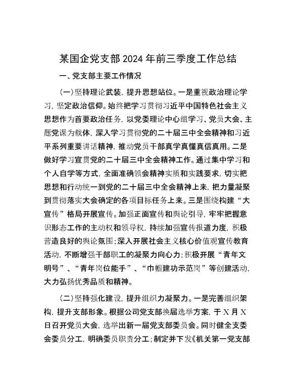 某国企党支部2024年前三季度工作总结 2024-10-23 Word模板 62 购买前,请一定要先点击这里看看,欢迎持续关注,精彩模板每天推送 预览结束,本文件为word文档,一共4页,共1923字,请购买后,下载后查看 购买前,请一定要先点击这里看看,欢迎持续关注,精彩模板每天推送 资源下载下载价格29 RMBVIP免费升级VIP点击检测网盘有效后购买有任何充值和下载问题请加微信:xuexixuexi66 0 总结汇报
