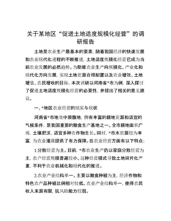 关于某地区 “促进土地适度规模化经营” 的调研报告 2024-10-23 Word模板 63 购买前,请一定要先点击这里看看,欢迎持续关注,精彩模板每天推送 预览结束,本文件为word文档,一共4页,共1800字,请购买后,下载后查看 购买前,请一定要先点击这里看看,欢迎持续关注,精彩模板每天推送 资源下载下载价格29 RMBVIP免费升级VIP点击检测网盘有效后购买有任何充值和下载问题请加微信:xuexixuexi66 0 总结汇报