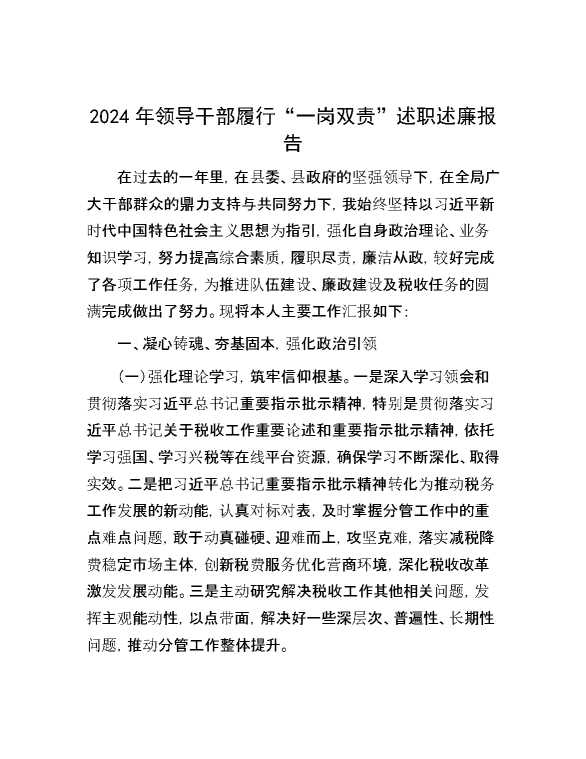 2024年领导干部履行“一岗双责”述职述廉报告 2024-10-23 Word模板 63 购买前,请一定要先点击这里看看,欢迎持续关注,精彩模板每天推送 预览结束,本文件为word文档,一共8页,共3731字,请购买后,下载后查看 购买前,请一定要先点击这里看看,欢迎持续关注,精彩模板每天推送 资源下载下载价格29 RMBVIP免费升级VIP点击检测网盘有效后购买有任何充值和下载问题请加微信:xuexixuexi66 0 总结汇报