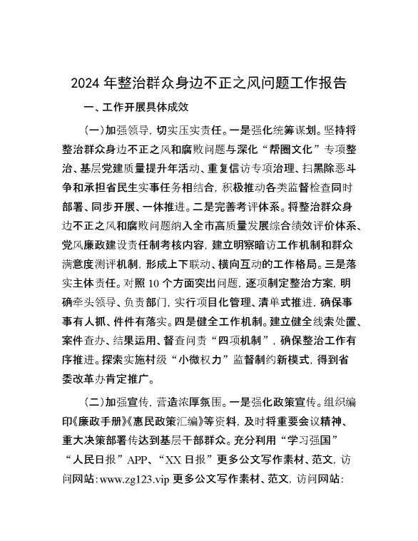 2024年整治群众身边不正之风问题工作报告 2024-10-23 Word模板 59 购买前,请一定要先点击这里看看,欢迎持续关注,精彩模板每天推送 预览结束,本文件为word文档,一共6页,共2640字,请购买后,下载后查看 购买前,请一定要先点击这里看看,欢迎持续关注,精彩模板每天推送 资源下载下载价格29 RMBVIP免费升级VIP点击检测网盘有效后购买有任何充值和下载问题请加微信:xuexixuexi66 0 总结汇报