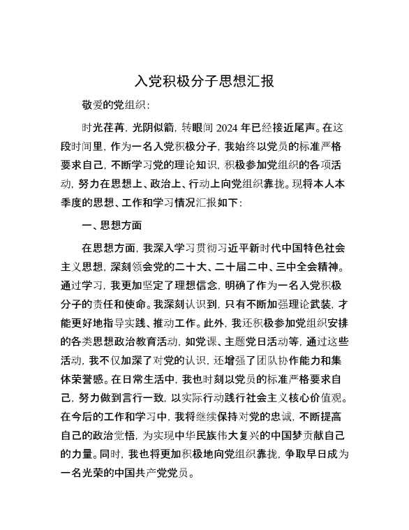 入党积极分子思想汇报 2024-10-23 Word模板 63 购买前,请一定要先点击这里看看,欢迎持续关注,精彩模板每天推送 预览结束,本文件为word文档,一共4页,共1347字,请购买后,下载后查看 购买前,请一定要先点击这里看看,欢迎持续关注,精彩模板每天推送 资源下载下载价格29 RMBVIP免费升级VIP点击检测网盘有效后购买有任何充值和下载问题请加微信:xuexixuexi66 0 总结汇报