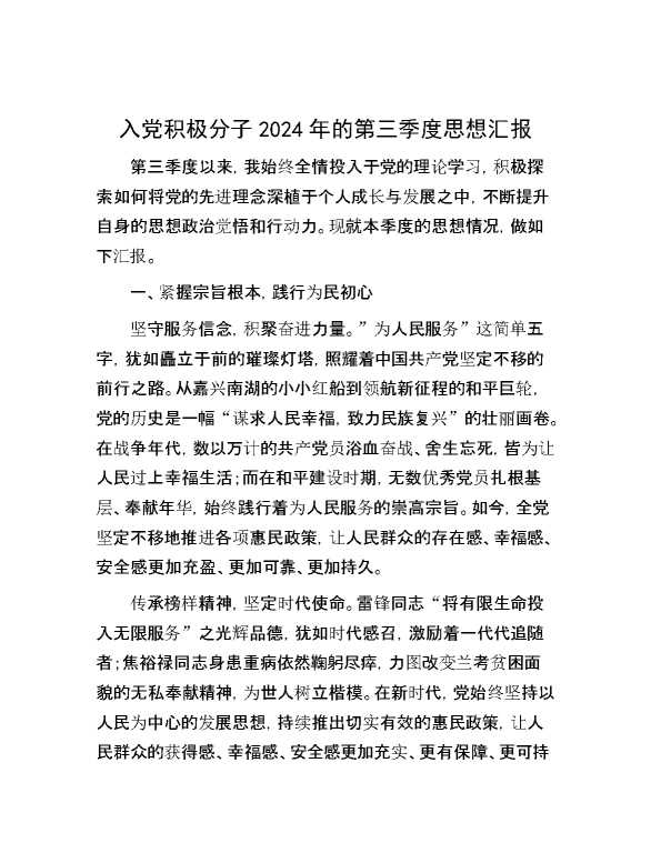入党积极分子2024年的第三季度思想汇报 2024-10-23 Word模板 66 购买前,请一定要先点击这里看看,欢迎持续关注,精彩模板每天推送 预览结束,本文件为word文档,一共4页,共1757字,请购买后,下载后查看 购买前,请一定要先点击这里看看,欢迎持续关注,精彩模板每天推送 资源下载下载价格29 RMBVIP免费升级VIP点击检测网盘有效后购买有任何充值和下载问题请加微信:xuexixuexi66 0 总结汇报