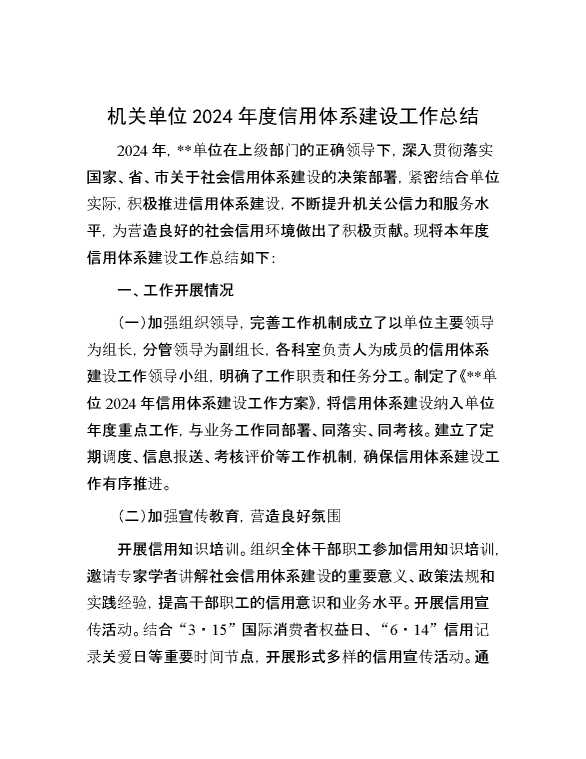 机关单位2024年度信用体系建设工作总结 2024-10-23 Word模板 63 购买前,请一定要先点击这里看看,欢迎持续关注,精彩模板每天推送 预览结束,本文件为word文档,一共6页,共2494字,请购买后,下载后查看 购买前,请一定要先点击这里看看,欢迎持续关注,精彩模板每天推送 资源下载下载价格29 RMBVIP免费升级VIP点击检测网盘有效后购买有任何充值和下载问题请加微信:xuexixuexi66 0 总结汇报