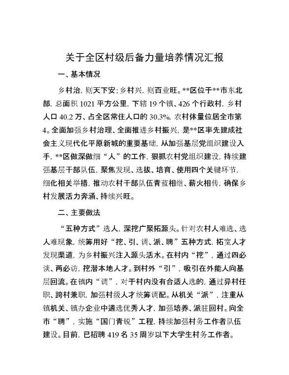 关于全区村级后备力量培养情况汇报 2024-10-23 Word模板 72 购买前,请一定要先点击这里看看,欢迎持续关注,精彩模板每天推送 预览结束,本文件为word文档,一共5页,共2017字,请购买后,下载后查看 购买前,请一定要先点击这里看看,欢迎持续关注,精彩模板每天推送 资源下载下载价格29 RMBVIP免费升级VIP点击检测网盘有效后购买有任何充值和下载问题请加微信:xuexixuexi66 0 总结汇报