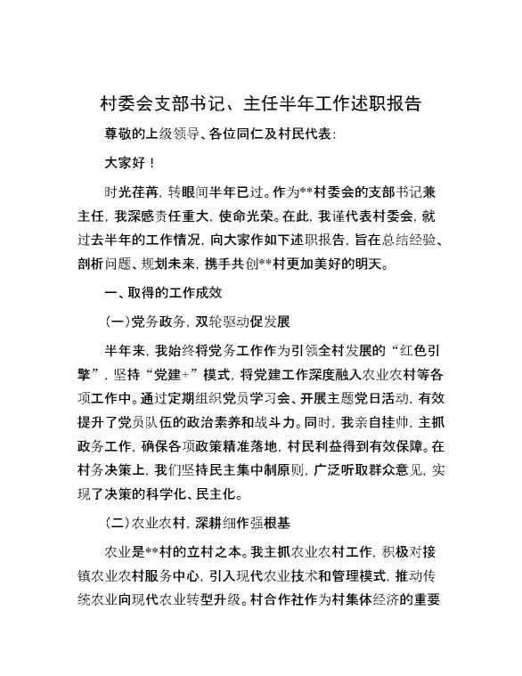 村委会支部书记、主任半年工作述职报告 2024-10-23 Word模板 61 购买前,请一定要先点击这里看看,欢迎持续关注,精彩模板每天推送 预览结束,本文件为word文档,一共3页,共1188字,请购买后,下载后查看 购买前,请一定要先点击这里看看,欢迎持续关注,精彩模板每天推送 资源下载下载价格29 RMBVIP免费升级VIP点击检测网盘有效后购买有任何充值和下载问题请加微信:xuexixuexi66 0 总结汇报