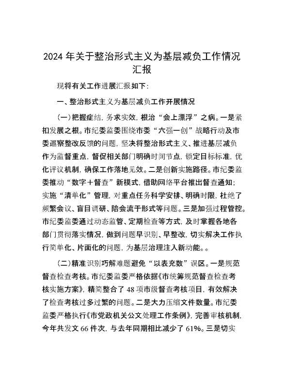 2024年关于整治形式主义为基层减负工作情况汇报 2024-10-23 Word模板 66 购买前,请一定要先点击这里看看,欢迎持续关注,精彩模板每天推送 预览结束,本文件为word文档,一共5页,共2283字,请购买后,下载后查看 购买前,请一定要先点击这里看看,欢迎持续关注,精彩模板每天推送 资源下载下载价格29 RMBVIP免费升级VIP点击检测网盘有效后购买有任何充值和下载问题请加微信:xuexixuexi66 0 总结汇报