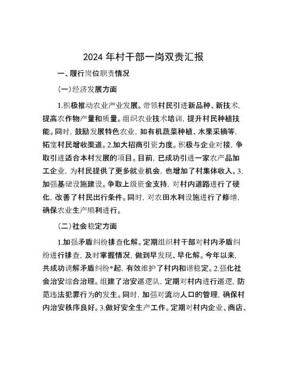 2024年村干部一岗双责汇报 2024-10-23 Word模板 62 购买前,请一定要先点击这里看看,欢迎持续关注,精彩模板每天推送 预览结束,本文件为word文档,一共4页,共1467字,请购买后,下载后查看 购买前,请一定要先点击这里看看,欢迎持续关注,精彩模板每天推送 资源下载下载价格29 RMBVIP免费升级VIP点击检测网盘有效后购买有任何充值和下载问题请加微信:xuexixuexi66 0 总结汇报