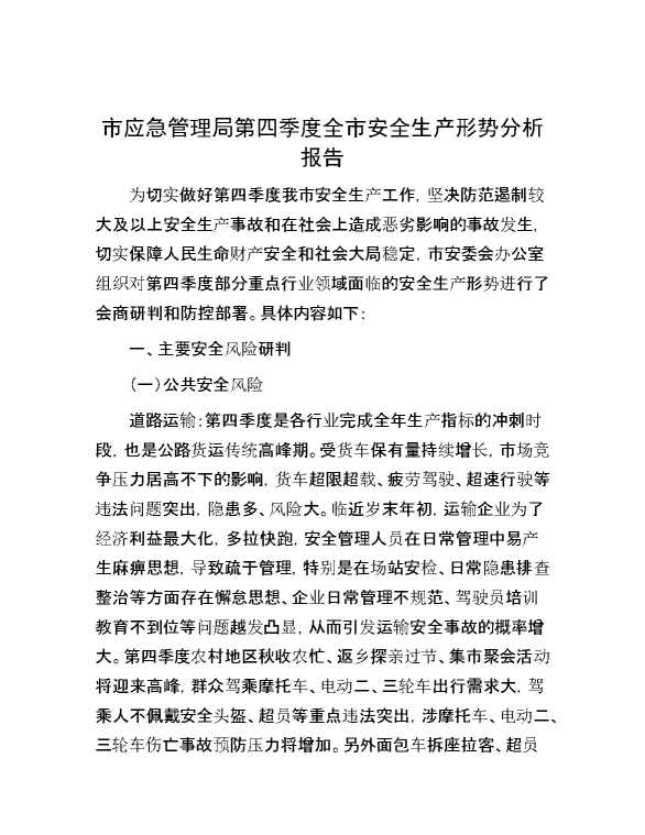 市应急管理局第四季度全市安全生产形势分析报告 2024-10-23 Word模板 61 购买前,请一定要先点击这里看看,欢迎持续关注,精彩模板每天推送 预览结束,本文件为word文档,一共9页,共4307字,请购买后,下载后查看 购买前,请一定要先点击这里看看,欢迎持续关注,精彩模板每天推送 资源下载下载价格29 RMBVIP免费升级VIP点击检测网盘有效后购买有任何充值和下载问题请加微信:xuexixuexi66 0 总结汇报