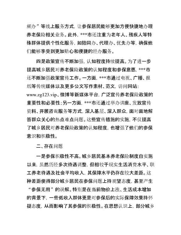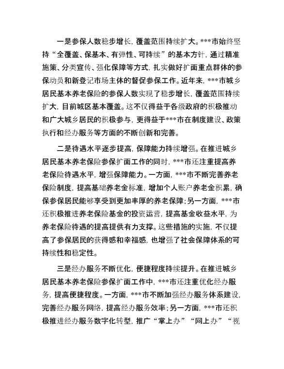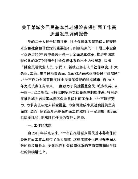 关于某城乡居民基本养老保险参保扩面工作高质量发展调研报告 2024-10-23 Word模板 59 购买前,请一定要先点击这里看看,欢迎持续关注,精彩模板每天推送 预览结束,本文件为word文档,一共8页,共3645字,请购买后,下载后查看 购买前,请一定要先点击这里看看,欢迎持续关注,精彩模板每天推送 资源下载下载价格29 RMBVIP免费升级VIP点击检测网盘有效后购买有任何充值和下载问题请加微信:xuexixuexi66 0 总结汇报