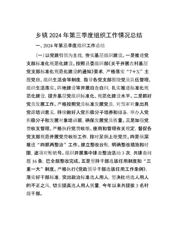 乡镇2024年第三季度组织工作情况总结 2024-10-23 Word模板 62 购买前,请一定要先点击这里看看,欢迎持续关注,精彩模板每天推送 预览结束,本文件为word文档,一共5页,共2214字,请购买后,下载后查看 购买前,请一定要先点击这里看看,欢迎持续关注,精彩模板每天推送 资源下载下载价格29 RMBVIP免费升级VIP点击检测网盘有效后购买有任何充值和下载问题请加微信:xuexixuexi66 0 总结汇报