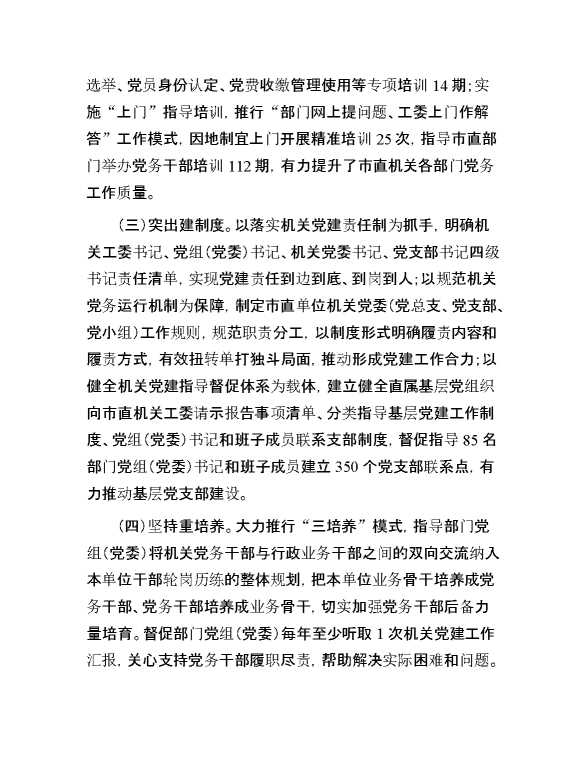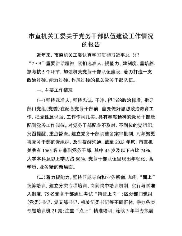 市直机关工委关于党务干部队伍建设工作情况的报告 2024-10-23 Word模板 61 购买前,请一定要先点击这里看看,欢迎持续关注,精彩模板每天推送 预览结束,本文件为word文档,一共4页,共1676字,请购买后,下载后查看 购买前,请一定要先点击这里看看,欢迎持续关注,精彩模板每天推送 资源下载下载价格29 RMBVIP免费升级VIP点击检测网盘有效后购买有任何充值和下载问题请加微信:xuexixuexi66 0 总结汇报