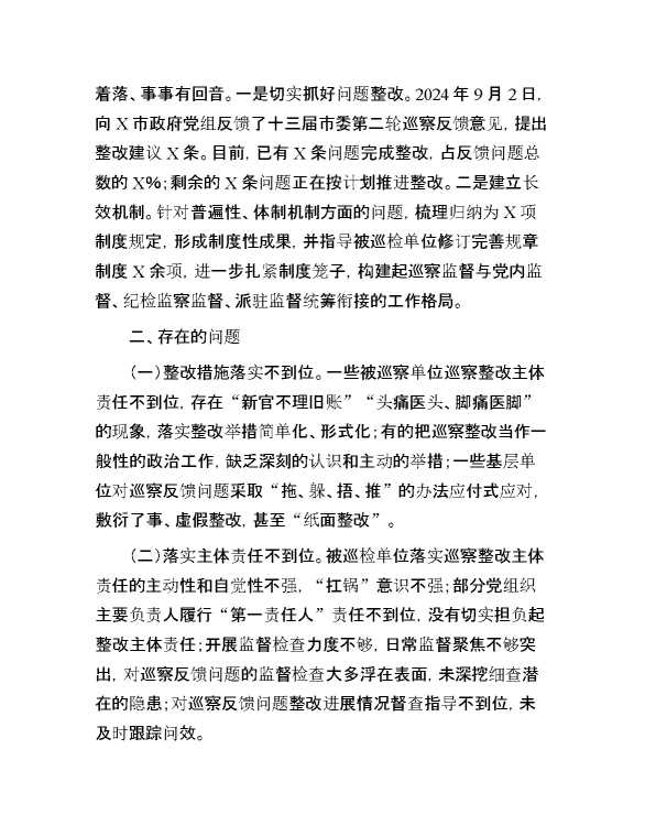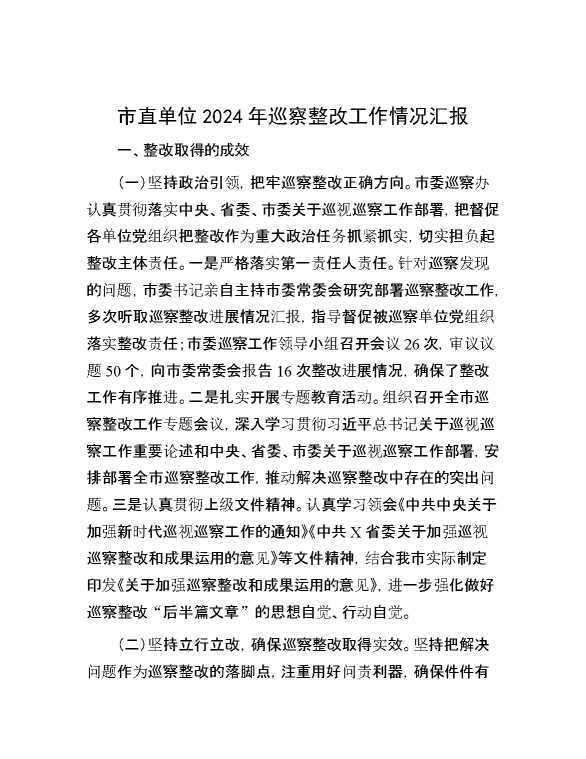 市直单位2024年巡察整改工作情况汇报 2024-10-23 Word模板 69 购买前,请一定要先点击这里看看,欢迎持续关注,精彩模板每天推送 预览结束,本文件为word文档,一共4页,共1857字,请购买后,下载后查看 购买前,请一定要先点击这里看看,欢迎持续关注,精彩模板每天推送 资源下载下载价格29 RMBVIP免费升级VIP点击检测网盘有效后购买有任何充值和下载问题请加微信:xuexixuexi66 0 总结汇报