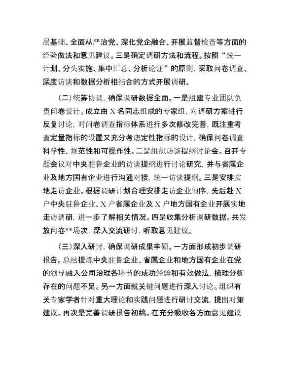 关于国有企业党的建设工作情况调研报告 2024-10-23 Word模板 66 购买前,请一定要先点击这里看看,欢迎持续关注,精彩模板每天推送 预览结束,本文件为word文档,一共8页,共3804字,请购买后,下载后查看 购买前,请一定要先点击这里看看,欢迎持续关注,精彩模板每天推送 资源下载下载价格29 RMBVIP免费升级VIP点击检测网盘有效后购买有任何充值和下载问题请加微信:xuexixuexi66 0 总结汇报