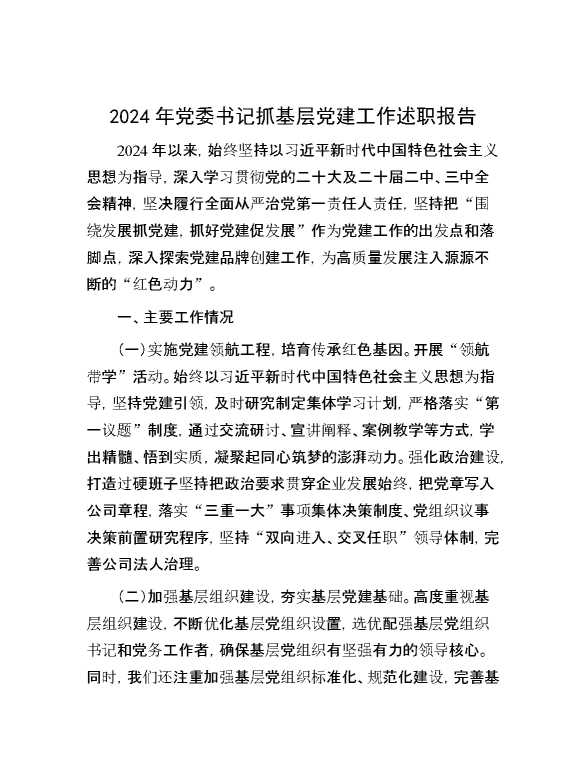 2024年党委书记抓基层党建工作述职报告 2024-10-23 Word模板 68 购买前,请一定要先点击这里看看,欢迎持续关注,精彩模板每天推送 预览结束,本文件为word文档,一共5页,共2069字,请购买后,下载后查看 购买前,请一定要先点击这里看看,欢迎持续关注,精彩模板每天推送 资源下载下载价格29 RMBVIP免费升级VIP点击检测网盘有效后购买有任何充值和下载问题请加微信:xuexixuexi66 0 总结汇报