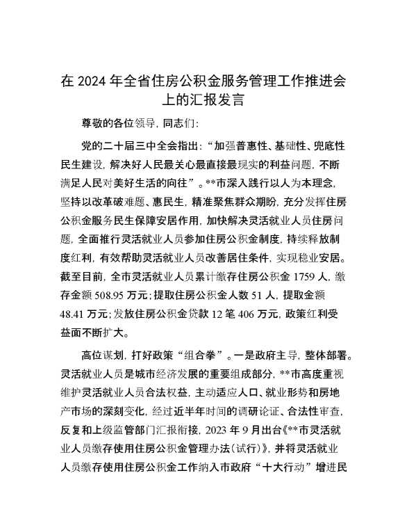 在2024年全省住房公积金服务管理工作推进会上的汇报发言 2024-10-25 Word模板 58 购买前,请一定要先点击这里看看,欢迎持续关注,精彩模板每天推送 预览结束,本文件为word文档,一共4页,共1977字,请购买后,下载后查看 购买前,请一定要先点击这里看看,欢迎持续关注,精彩模板每天推送 资源下载下载价格29 RMBVIP免费升级VIP点击检测网盘有效后购买有任何充值和下载问题请加微信:xuexixuexi66 0 演讲发言