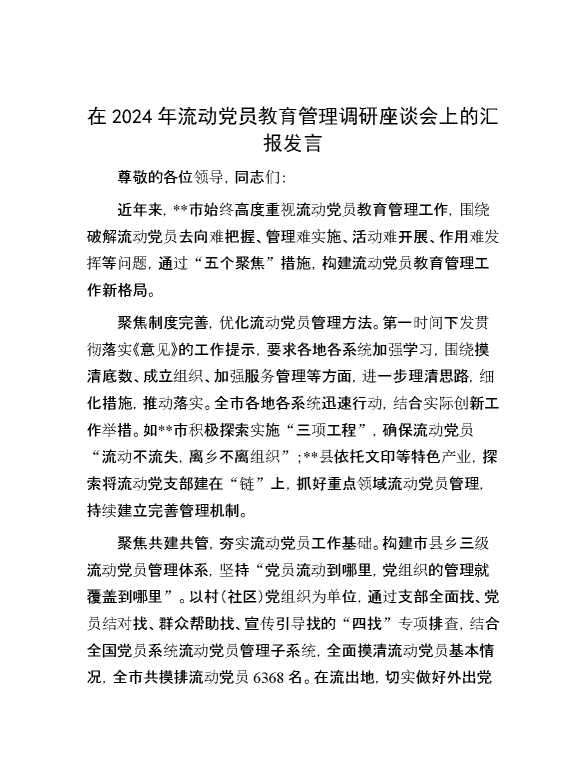 在2024年流动党员教育管理调研座谈会上的汇报发言 2024-10-25 Word模板 60 购买前,请一定要先点击这里看看,欢迎持续关注,精彩模板每天推送 预览结束,本文件为word文档,一共4页,共1521字,请购买后,下载后查看 购买前,请一定要先点击这里看看,欢迎持续关注,精彩模板每天推送 资源下载下载价格29 RMBVIP免费升级VIP点击检测网盘有效后购买有任何充值和下载问题请加微信:xuexixuexi66 0 演讲发言