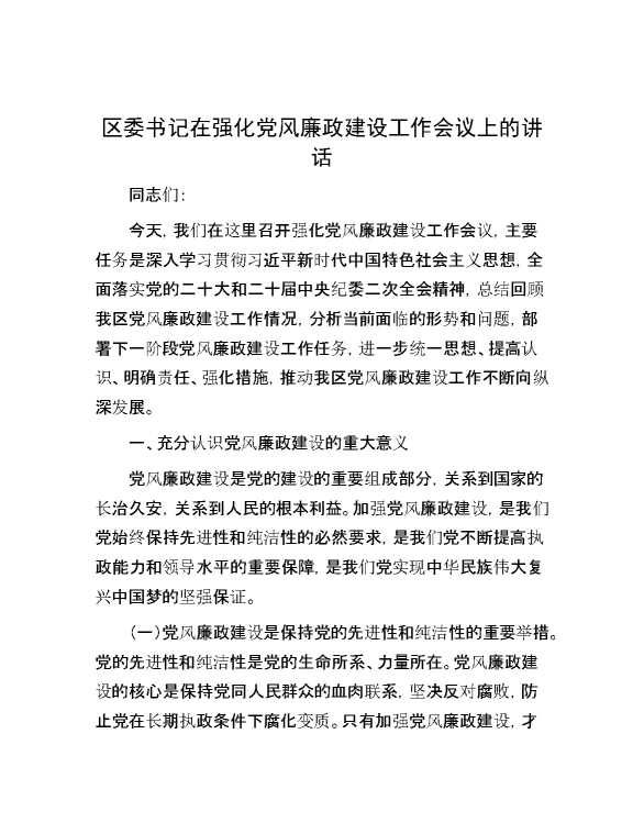 区委书记在强化党风廉政建设工作会议上的讲话 2024-10-25 Word模板 73 购买前,请一定要先点击这里看看,欢迎持续关注,精彩模板每天推送 预览结束,本文件为word文档,一共9页,共3870字,请购买后,下载后查看 购买前,请一定要先点击这里看看,欢迎持续关注,精彩模板每天推送 资源下载下载价格29 RMBVIP免费升级VIP点击检测网盘有效后购买有任何充值和下载问题请加微信:xuexixuexi66 0 演讲发言