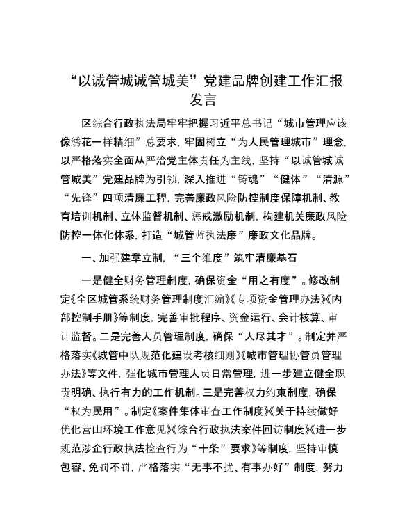 “以诚管城 诚管城美”党建品牌创建工作汇报发言 2024-10-25 Word模板 94 购买前,请一定要先点击这里看看,欢迎持续关注,精彩模板每天推送 预览结束,本文件为word文档,一共5页,共2329字,请购买后,下载后查看 购买前,请一定要先点击这里看看,欢迎持续关注,精彩模板每天推送 资源下载下载价格29 RMBVIP免费升级VIP点击检测网盘有效后购买有任何充值和下载问题请加微信:xuexixuexi66 0 演讲发言