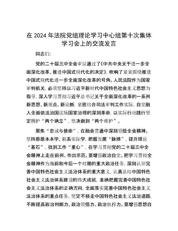 在2024年法院党组理论学习中心组第十次集体学习会上的交流发言 2024-10-25 Word模板 145 购买前,请一定要先点击这里看看,欢迎持续关注,精彩模板每天推送 预览结束,本文件为word文档,一共5页,共2418字,请购买后,下载后查看 购买前,请一定要先点击这里看看,欢迎持续关注,精彩模板每天推送 资源下载下载价格29 RMBVIP免费升级VIP点击检测网盘有效后购买有任何充值和下载问题请加微信:xuexixuexi66 0 演讲发言