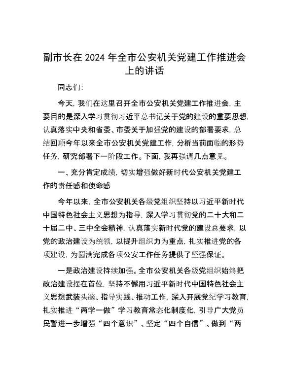 副市长在2024年全市公安机关党建工作推进会上的讲话 2024-10-25 Word模板 119 购买前,请一定要先点击这里看看,欢迎持续关注,精彩模板每天推送 预览结束,本文件为word文档,一共8页,共3756字,请购买后,下载后查看 购买前,请一定要先点击这里看看,欢迎持续关注,精彩模板每天推送 资源下载下载价格29 RMBVIP免费升级VIP点击检测网盘有效后购买有任何充值和下载问题请加微信:xuexixuexi66 0 演讲发言