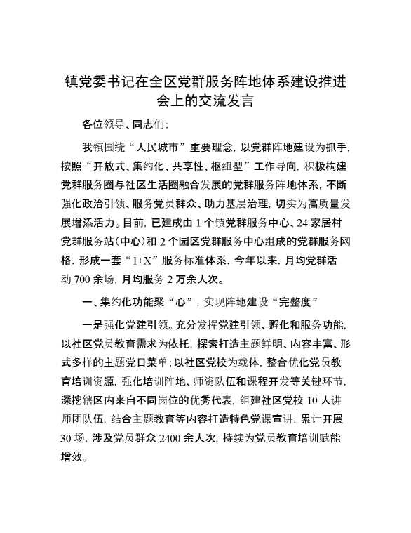 镇党委书记在全区党群服务阵地体系建设推进会上的交流发言 2024-10-25 Word模板 100 购买前,请一定要先点击这里看看,欢迎持续关注,精彩模板每天推送 预览结束,本文件为word文档,一共4页,共1909字,请购买后,下载后查看 购买前,请一定要先点击这里看看,欢迎持续关注,精彩模板每天推送 资源下载下载价格29 RMBVIP免费升级VIP点击检测网盘有效后购买有任何充值和下载问题请加微信:xuexixuexi66 0 演讲发言