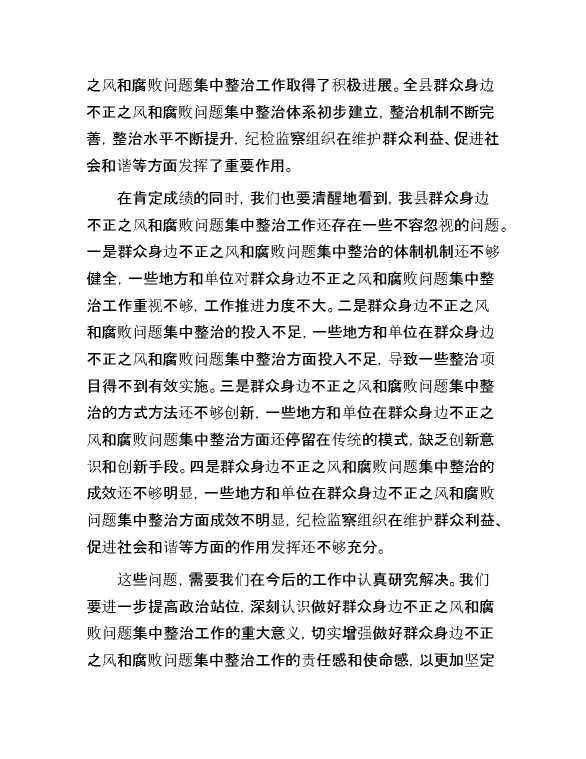 纪委书记在2024年全县群众身边不正之风和腐败问题集中整治工作推进会上的讲话 2024-10-25 Word模板 155 购买前,请一定要先点击这里看看,欢迎持续关注,精彩模板每天推送 预览结束,本文件为word文档,一共6页,共2711字,请购买后,下载后查看 购买前,请一定要先点击这里看看,欢迎持续关注,精彩模板每天推送 资源下载下载价格29 RMBVIP免费升级VIP点击检测网盘有效后购买有任何充值和下载问题请加微信:xuexixuexi66 0 演讲发言