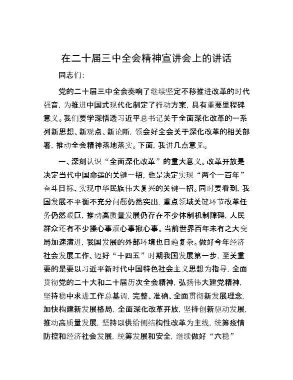 在二十届三中全会精神宣讲会上的讲话 2024-10-25 Word模板 112 购买前,请一定要先点击这里看看,欢迎持续关注,精彩模板每天推送 预览结束,本文件为word文档,一共5页,共2303字,请购买后,下载后查看 购买前,请一定要先点击这里看看,欢迎持续关注,精彩模板每天推送 资源下载下载价格29 RMBVIP免费升级VIP点击检测网盘有效后购买有任何充值和下载问题请加微信:xuexixuexi66 0 演讲发言