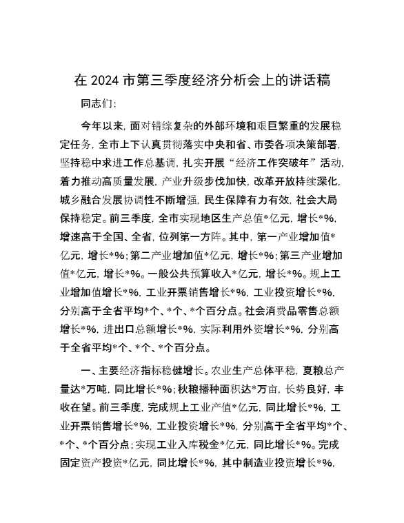 在2024市第三季度经济分析会上的讲话稿 2024-10-25 Word模板 106 购买前,请一定要先点击这里看看,欢迎持续关注,精彩模板每天推送 预览结束,本文件为word文档,一共9页,共4264字,请购买后,下载后查看 购买前,请一定要先点击这里看看,欢迎持续关注,精彩模板每天推送 资源下载下载价格29 RMBVIP免费升级VIP点击检测网盘有效后购买有任何充值和下载问题请加微信:xuexixuexi66 0 演讲发言