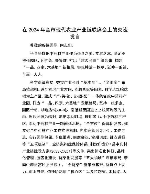 在2024年全市现代农业产业链联席会上的交流发言 2024-10-25 Word模板 117 购买前,请一定要先点击这里看看,欢迎持续关注,精彩模板每天推送 预览结束,本文件为word文档,一共4页,共1937字,请购买后,下载后查看 购买前,请一定要先点击这里看看,欢迎持续关注,精彩模板每天推送 资源下载下载价格29 RMBVIP免费升级VIP点击检测网盘有效后购买有任何充值和下载问题请加微信:xuexixuexi66 0 演讲发言