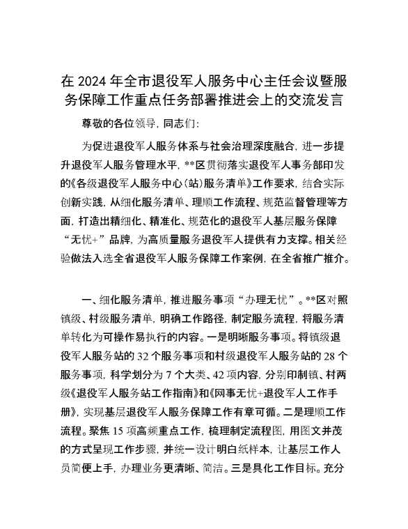 在2024年全市退役军人服务中心主任会议暨服务保障工作重点任务部署推进会上的交流发言 2024-10-25 Word模板 99 购买前,请一定要先点击这里看看,欢迎持续关注,精彩模板每天推送 预览结束,本文件为word文档,一共3页,共1395字,请购买后,下载后查看 购买前,请一定要先点击这里看看,欢迎持续关注,精彩模板每天推送 资源下载下载价格29 RMBVIP免费升级VIP点击检测网盘有效后购买有任何充值和下载问题请加微信:xuexixuexi66 0 演讲发言