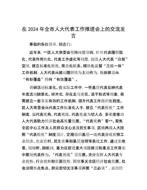在2024年全市人大代表工作推进会上的交流发言 2024-10-25 Word模板 99 购买前,请一定要先点击这里看看,欢迎持续关注,精彩模板每天推送 预览结束,本文件为word文档,一共4页,共1868字,请购买后,下载后查看 购买前,请一定要先点击这里看看,欢迎持续关注,精彩模板每天推送 资源下载下载价格29 RMBVIP免费升级VIP点击检测网盘有效后购买有任何充值和下载问题请加微信:xuexixuexi66 0 演讲发言