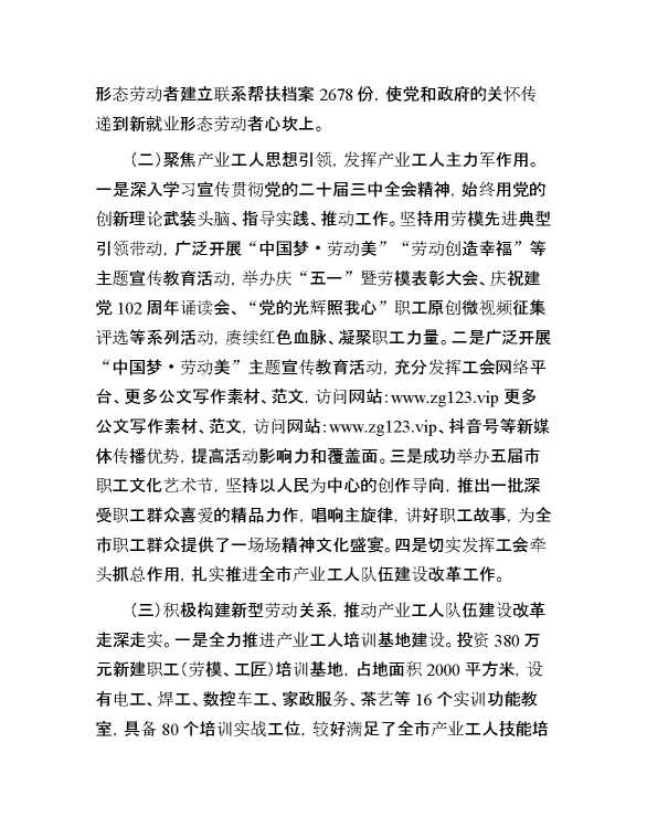 市总工会2024年产业工人改革工作情况汇报 2024-10-28 Word模板 101 购买前,请一定要先点击这里看看,欢迎持续关注,精彩模板每天推送 预览结束,本文件为word文档,一共6页,共2672字,请购买后,下载后查看 购买前,请一定要先点击这里看看,欢迎持续关注,精彩模板每天推送 资源下载下载价格29 RMBVIP免费升级VIP点击检测网盘有效后购买有任何充值和下载问题请加微信:xuexixuexi66 0 总结汇报