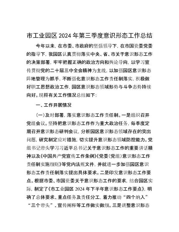 市工业园区2024年第三季度意识形态工作总结 2024-10-28 Word模板 90 购买前,请一定要先点击这里看看,欢迎持续关注,精彩模板每天推送 预览结束,本文件为word文档,一共7页,共3273字,请购买后,下载后查看 购买前,请一定要先点击这里看看,欢迎持续关注,精彩模板每天推送 资源下载下载价格29 RMBVIP免费升级VIP点击检测网盘有效后购买有任何充值和下载问题请加微信:xuexixuexi66 0 总结汇报