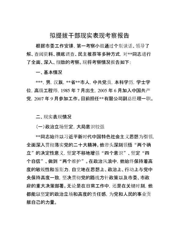 拟提拔干部现实表现考察报告 2024-10-28 Word模板 83 购买前,请一定要先点击这里看看,欢迎持续关注,精彩模板每天推送 预览结束,本文件为word文档,一共4页,共1342字,请购买后,下载后查看 购买前,请一定要先点击这里看看,欢迎持续关注,精彩模板每天推送 资源下载下载价格29 RMBVIP免费升级VIP点击检测网盘有效后购买有任何充值和下载问题请加微信:xuexixuexi66 0 总结汇报