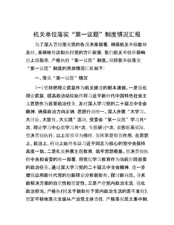 机关单位落实“第一议题”制度情况汇报 2024-10-28 Word模板 101 购买前,请一定要先点击这里看看,欢迎持续关注,精彩模板每天推送 预览结束,本文件为word文档,一共5页,共2154字,请购买后,下载后查看 购买前,请一定要先点击这里看看,欢迎持续关注,精彩模板每天推送 资源下载下载价格29 RMBVIP免费升级VIP点击检测网盘有效后购买有任何充值和下载问题请加微信:xuexixuexi66 0 总结汇报