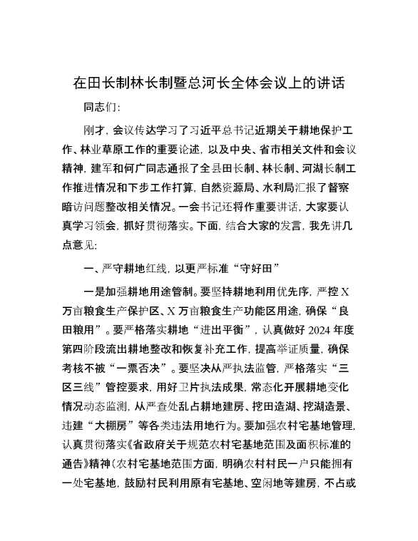 在田长制林长制暨总河长全体会议上的讲话 2024-10-30 Word模板 94 购买前,请一定要先点击这里看看,欢迎持续关注,精彩模板每天推送 预览结束,本文件为word文档,一共5页,共2378字,请购买后,下载后查看 购买前,请一定要先点击这里看看,欢迎持续关注,精彩模板每天推送 资源下载下载价格29 RMBVIP免费升级VIP点击检测网盘有效后购买有任何充值和下载问题请加微信:xuexixuexi66 0 演讲发言