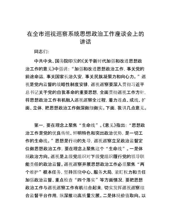 在全市巡视巡察系统思想政治工作座谈会上的讲话 2024-10-30 Word模板 102 购买前,请一定要先点击这里看看,欢迎持续关注,精彩模板每天推送 预览结束,本文件为word文档,一共5页,共2529字,请购买后,下载后查看 购买前,请一定要先点击这里看看,欢迎持续关注,精彩模板每天推送 资源下载下载价格29 RMBVIP免费升级VIP点击检测网盘有效后购买有任何充值和下载问题请加微信:xuexixuexi66 0 演讲发言
