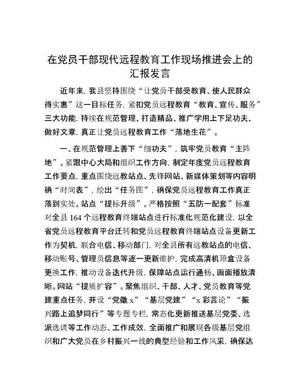 在党员干部现代远程教育工作现场推进会上的汇报发言 2024-10-30 Word模板 97 购买前,请一定要先点击这里看看,欢迎持续关注,精彩模板每天推送 预览结束,本文件为word文档,一共4页,共1824字,请购买后,下载后查看 购买前,请一定要先点击这里看看,欢迎持续关注,精彩模板每天推送 资源下载下载价格29 RMBVIP免费升级VIP点击检测网盘有效后购买有任何充值和下载问题请加微信:xuexixuexi66 0 演讲发言