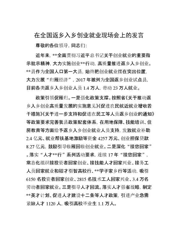 在全国返乡入乡创业就业现场会上的发言 2024-10-30 Word模板 108 购买前,请一定要先点击这里看看,欢迎持续关注,精彩模板每天推送 预览结束,本文件为word文档,一共4页,共1833字,请购买后,下载后查看 购买前,请一定要先点击这里看看,欢迎持续关注,精彩模板每天推送 资源下载下载价格29 RMBVIP免费升级VIP点击检测网盘有效后购买有任何充值和下载问题请加微信:xuexixuexi66 0 演讲发言
