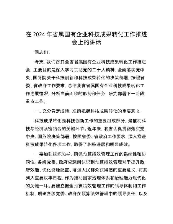 在2024年省属国有企业科技成果转化工作推进会上的讲话 2024-10-30 Word模板 104 购买前,请一定要先点击这里看看,欢迎持续关注,精彩模板每天推送 预览结束,本文件为word文档,一共8页,共3683字,请购买后,下载后查看 购买前,请一定要先点击这里看看,欢迎持续关注,精彩模板每天推送 资源下载下载价格29 RMBVIP免费升级VIP点击检测网盘有效后购买有任何充值和下载问题请加微信:xuexixuexi66 0 演讲发言