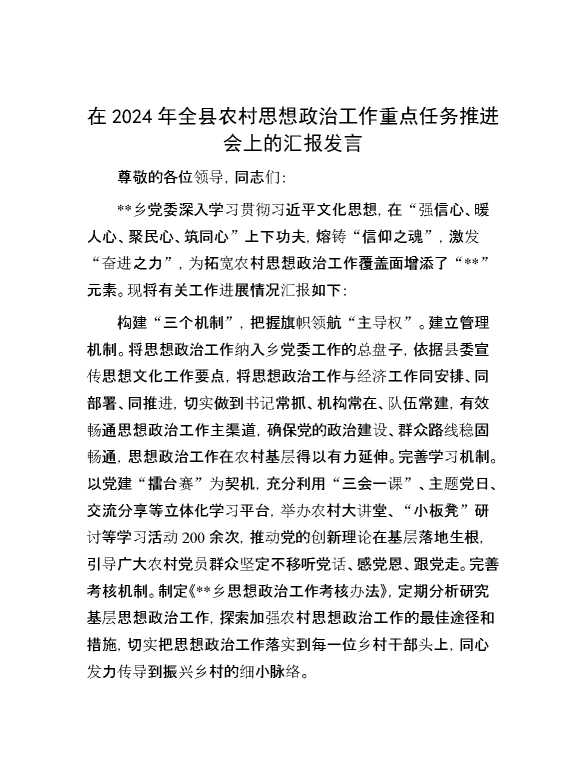 在2024年全县农村思想政治工作重点任务推进会上的汇报发言 2024-10-30 Word模板 108 购买前,请一定要先点击这里看看,欢迎持续关注,精彩模板每天推送 预览结束,本文件为word文档,一共3页,共1139字,请购买后,下载后查看 购买前,请一定要先点击这里看看,欢迎持续关注,精彩模板每天推送 资源下载下载价格29 RMBVIP免费升级VIP点击检测网盘有效后购买有任何充值和下载问题请加微信:xuexixuexi66 0 演讲发言