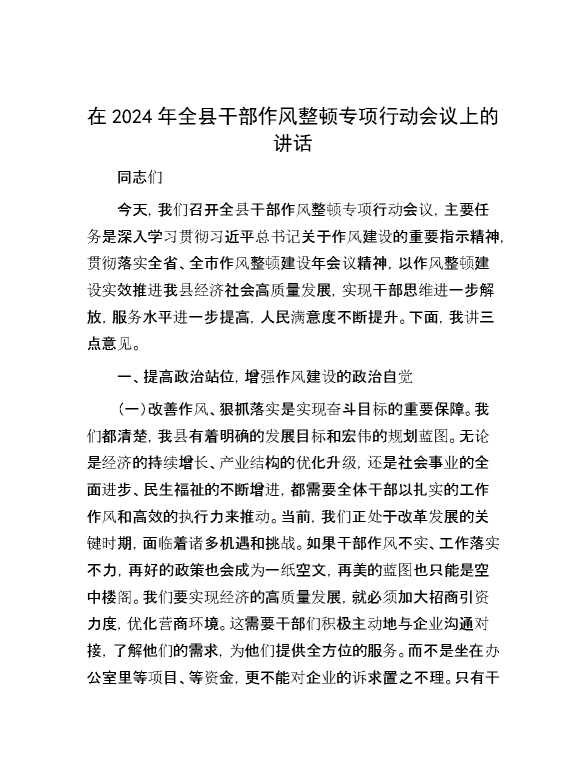 在2024年全县干部作风整顿专项行动会议上的讲话 2024-10-30 Word模板 114 购买前,请一定要先点击这里看看,欢迎持续关注,精彩模板每天推送 预览结束,本文件为word文档,一共7页,共3233字,请购买后,下载后查看 购买前,请一定要先点击这里看看,欢迎持续关注,精彩模板每天推送 资源下载下载价格29 RMBVIP免费升级VIP点击检测网盘有效后购买有任何充值和下载问题请加微信:xuexixuexi66 0 演讲发言