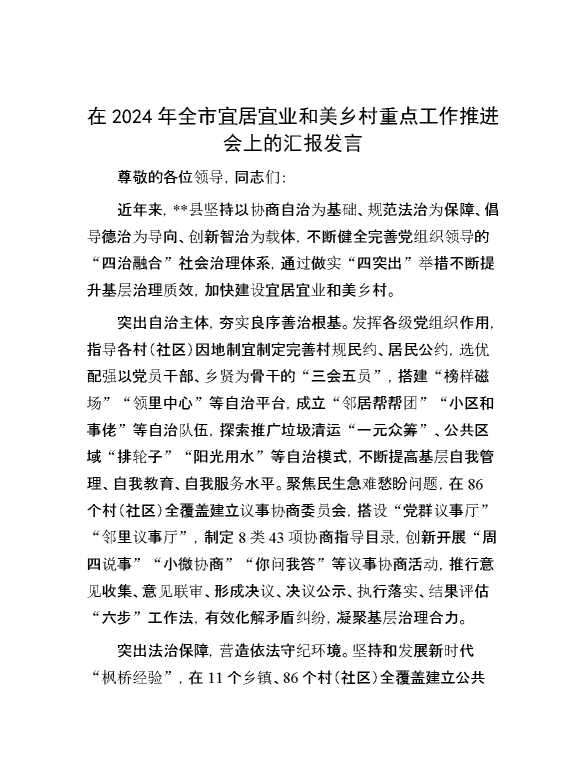 在2024年全市宜居宜业和美乡村重点工作推进会上的汇报发言 2024-10-30 Word模板 121 购买前,请一定要先点击这里看看,欢迎持续关注,精彩模板每天推送 预览结束,本文件为word文档,一共3页,共1317字,请购买后,下载后查看 购买前,请一定要先点击这里看看,欢迎持续关注,精彩模板每天推送 资源下载下载价格29 RMBVIP免费升级VIP点击检测网盘有效后购买有任何充值和下载问题请加微信:xuexixuexi66 0 演讲发言