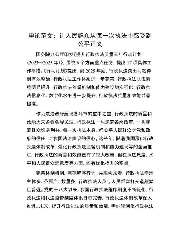 申论范文:让人民群众从每一次执法中感受到公平正义 2024-11-04 Word模板 66 购买前,请一定要先点击这里看看,欢迎持续关注,精彩模板每天推送 预览结束,本文件为word文档,一共3页,共1008字,请购买后,下载后查看 购买前,请一定要先点击这里看看,欢迎持续关注,精彩模板每天推送 资源下载下载价格29 RMBVIP免费升级VIP点击检测网盘有效后购买有任何充值和下载问题请加微信:xuexixuexi66 0 理论学习
