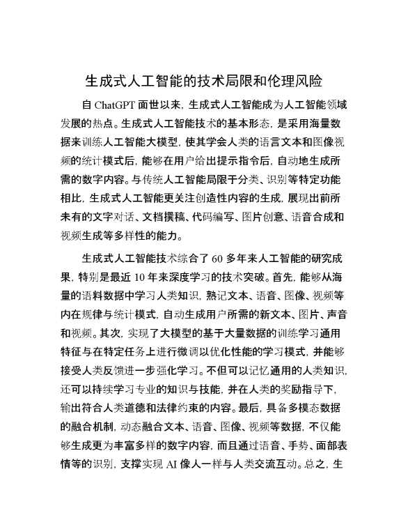 生成式人工智能的技术局限和伦理风险 2024-11-04 Word模板 69 购买前,请一定要先点击这里看看,欢迎持续关注,精彩模板每天推送 预览结束,本文件为word文档,一共5页,共2054字,请购买后,下载后查看 购买前,请一定要先点击这里看看,欢迎持续关注,精彩模板每天推送 资源下载下载价格29 RMBVIP免费升级VIP点击检测网盘有效后购买有任何充值和下载问题请加微信:xuexixuexi66 0 理论学习